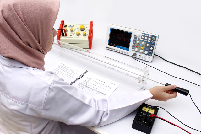 Dilengkapi dengan SLM (Sound Level Meter) untuk mengamati posisi perut dan simpul gelombang pada keadaan resonansi. Dengan menghubungkan mikrofon ke osiloskop dapat ditentukan pola gelombang dengan lebih mudah dan lebih baik. Gelombang bunyi yang tidak dapat dilihat menggunakan cahaya tampak dapat ditampilkan pada osiloskop.