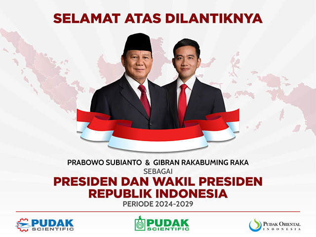 Segenap direksi dan staf Pudak Scientific mengucapkan selamat dan sukses kepada Bapak Prabowo Subianto dan Bapak Gibran Rakabuming Raka yang telah dilantik sebagai Presiden dan Wakil Presiden Republik Indonesia periode 2024-2029.