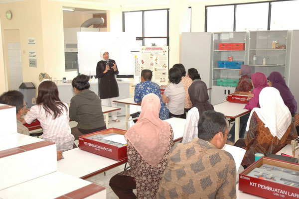 Ruang pelatihan menyerupai laboratorium sekolah, ber-AC, luas, nyaman, dan dilengkapi fasilitas wifi. Tersedia juga ruang sholat, ruang makan, dan toilet. |